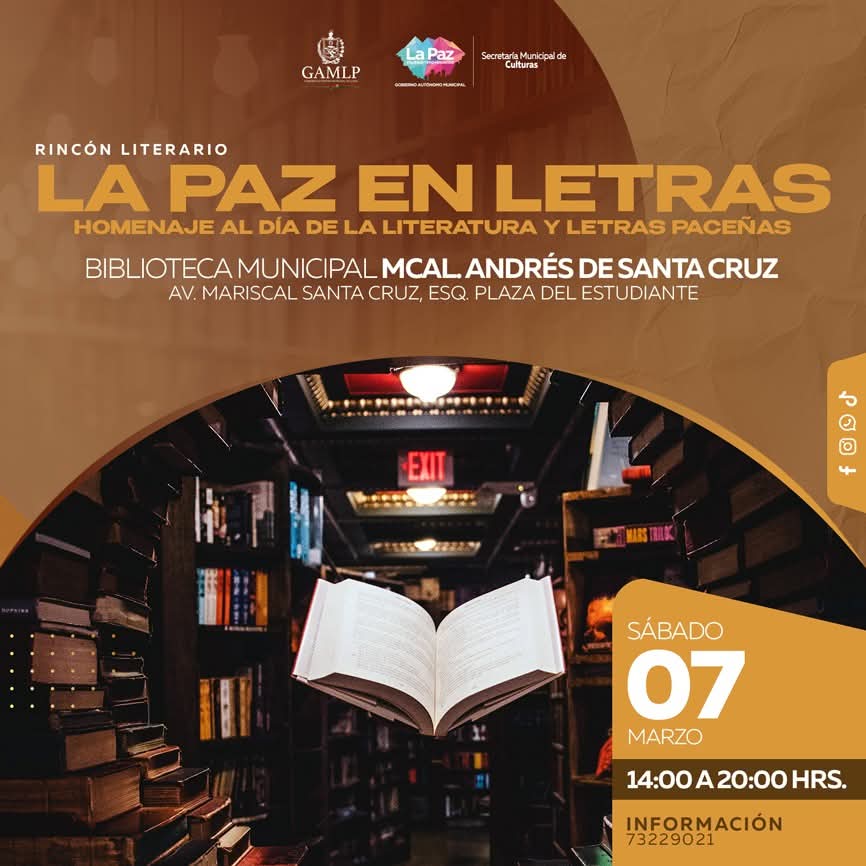 En conmemoración del Día de la Literatura y Letras Paceñas, la Biblioteca Municipal Mcal. Andrés de Santa Cruz, junto a SODESBO, propone una jornada dedicada a la memoria histórica y a la riqueza literaria local. La actividad reunirá intercambio de libros clásicos y contemporáneos, una muestra con autoras y autores actuales, exposición de cómics paceños … Leer más