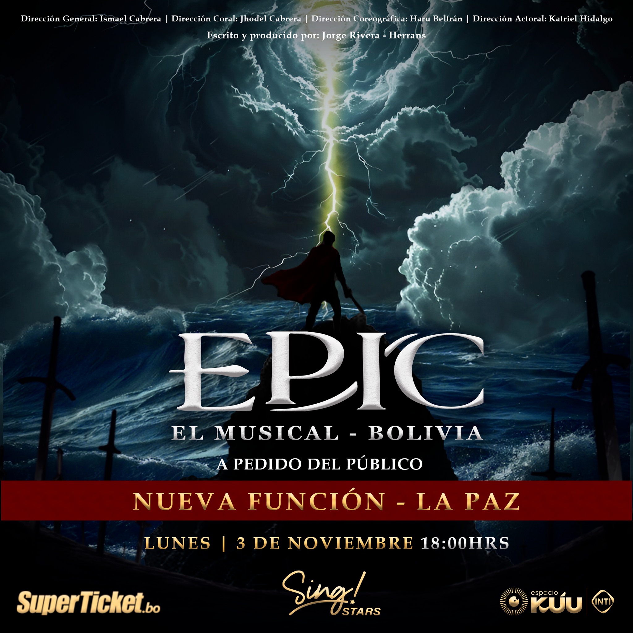Sing Vocal Studio presenta Epic: el musical, una producción escénica que integra teatro, música y danza en un montaje visual contemporáneo. Tras su éxito reciente, la obra ofrece una nueva función en el escenario de Espacio Kúu Inti, con un elenco multidisciplinario que combina interpretación vocal y coreográfica.