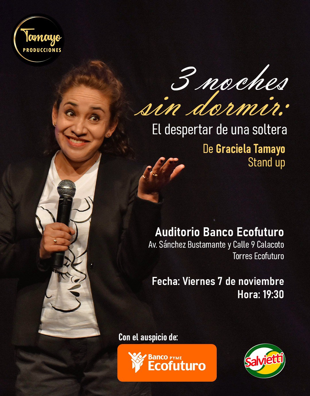 El viernes 7 de noviembre se presentará la exitosa obra unipersonal Tres noches sin dormir: el despertar de una soltera, una comedia multimedia que combina teatro, stand up y video en escena. La pieza, escrita por Antonio Torres y Graciela Tamayo, y dirigida por Torres, ha sido reconocida con una Mención de Honor en el … Leer más