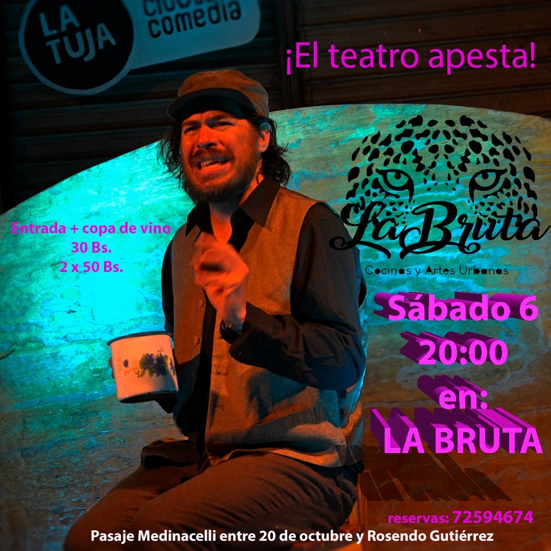 Propuesta teatral contemporánea que combina humor, ritmo escénico y una puesta dinámica orientada a público general. El montaje presenta una obra fresca que dialoga con la cotidianidad paceña desde una mirada ligera y cercana al espectador.