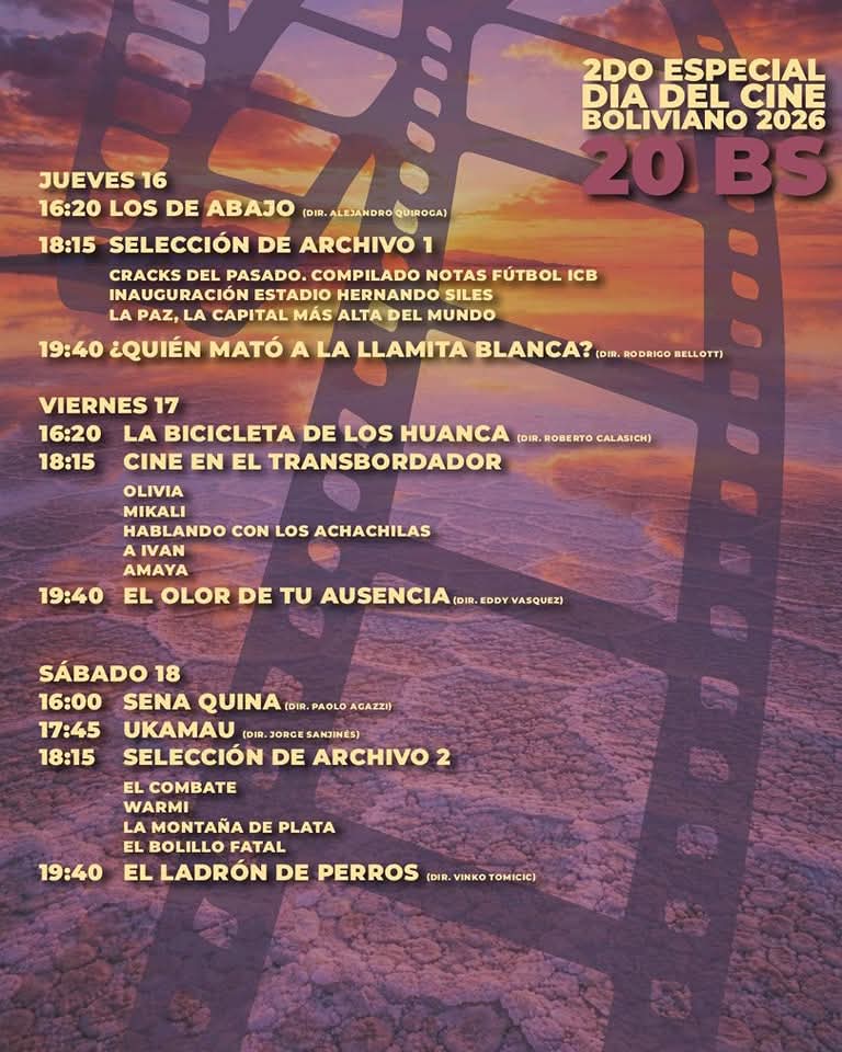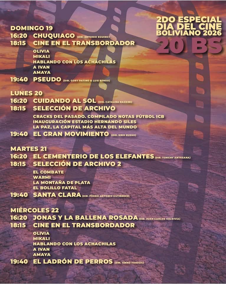 Una semana dedicada a lo mejor del cine nacional, con una programación especial que ampliará la celebración del Día del Cine Boliviano. Esta propuesta reunirá distintas producciones para disfrutar del séptimo arte, en una experiencia que invitará a redescubrir historias, miradas y talentos locales en pantalla grande.