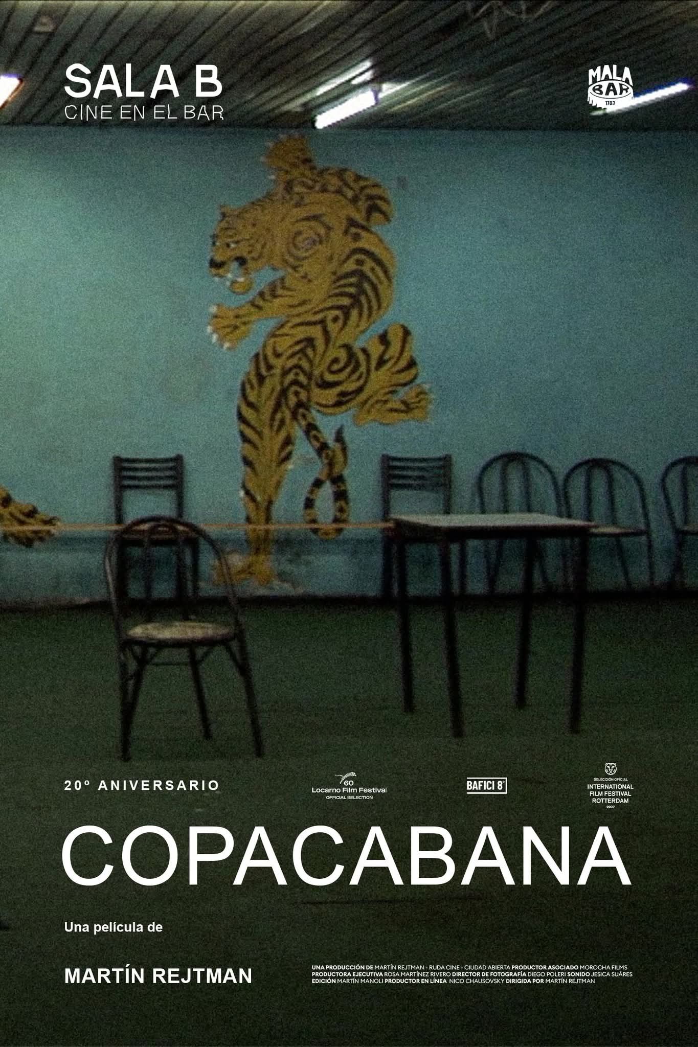 Cada año, a mediados de octubre, la comunidad boliviana en Buenos Aires celebra su festividad más importante: la de Nuestra Señora de Copacabana. Cientos de grupos de música y danza de todo el país, algunos incluso provenientes de Bolivia, se reúnen en torno a Charrúa para un gran desfile, en una celebración que trasciende la religión. Copacabana toma esta celebración como punto de partida. La película teje un retrato a la vez distante e íntimo de la comunidad boliviana en Buenos Aires. (Catálogo 24° Festival de cine de Rotterdam, 2007)