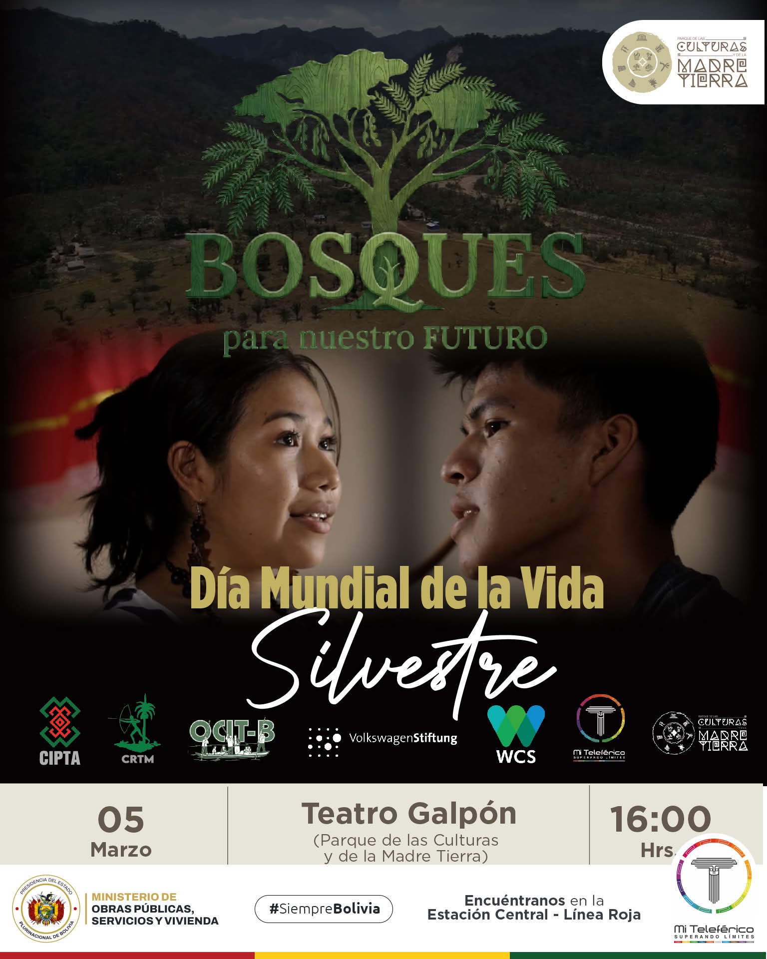En el Parque de las Culturas y de la Madre Tierra se abre un espacio para mirar, escuchar y sentir la naturaleza a través del cine, el diálogo y la memoria, con la colaboración especial de WCS Bolivia. Una cartelera ambiental que celebra la biodiversidad, los territorios y la relación profunda entre los pueblos y la Madre Tierra.