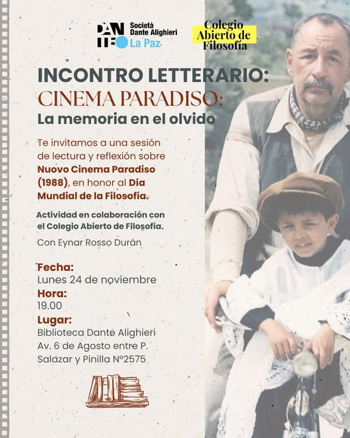 La actividad gira en torno a Nuovo Cinema Paradiso (1988), de Giuseppe Tornatore, película que aborda el poder evocador de las imágenes, los afectos preservados en silencio y la nostalgia vinculada a aquello que queda atrás. El ingreso será libre con previo registro.