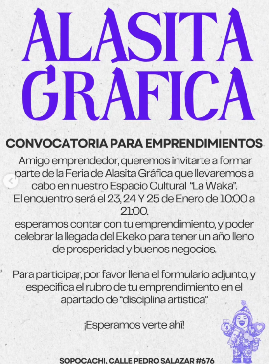¿Estás interesado en participar de la feria de Alasitas? Lanzamos la convocatoria para todo tipo de emprendimientos que quieran formar parte de esta gran celebración.