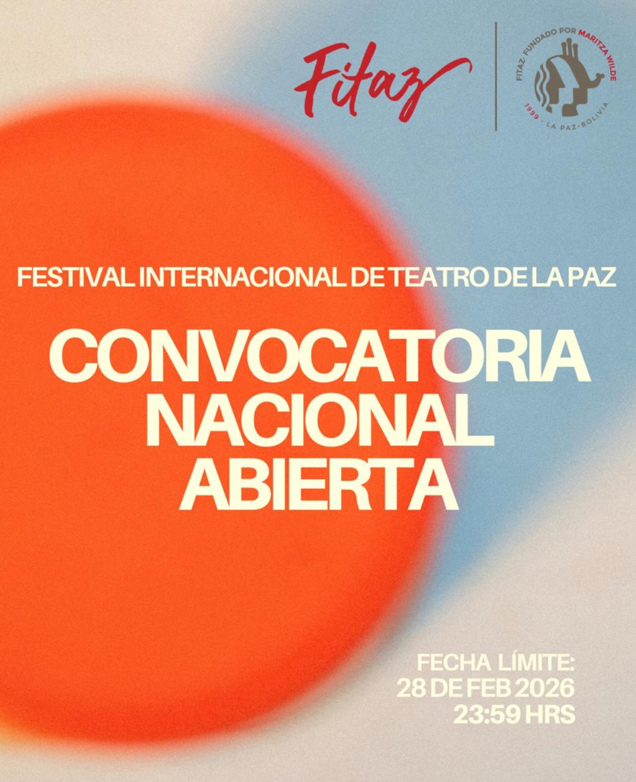Ya está abierta la convocatoria nacional del XV Festival Internacional de Teatro de La Paz – FITAZ 2026, que se llevará a cabo del 30 de agosto al 6 de septiembre en la ciudad de La Paz.