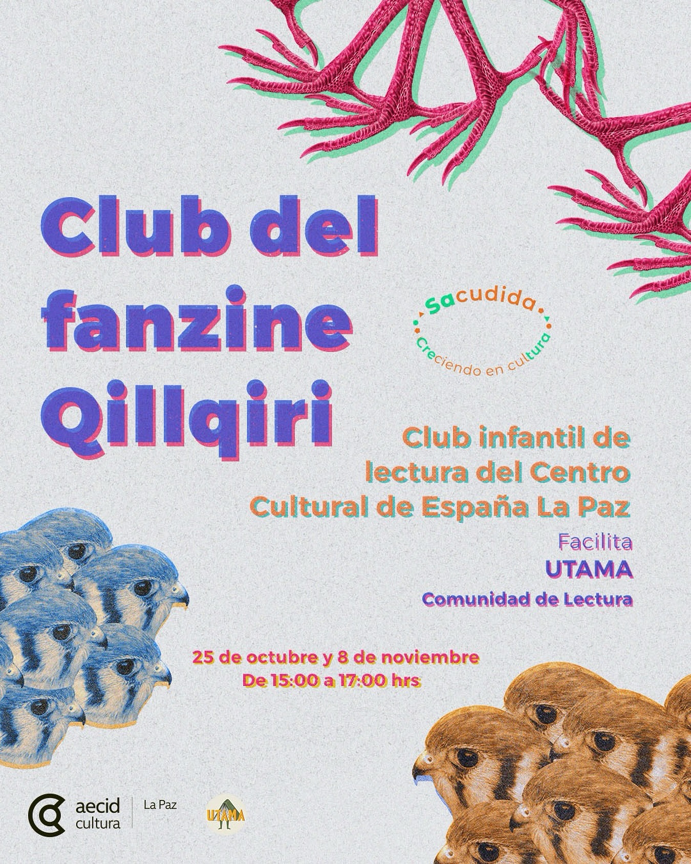 El Club del fanzine Qillqiri (en aymara, “la persona que escribe”) es un espacio de lectura crítica y escritura creativa para niñas y niños de 8 a 10 años. Forma parte del programa Sacudida y busca un acercamiento lúdico y reflexivo a la literatura boliviana mediante sesiones mensuales en las que se leen obras nacionales y se elaboran fanzines colectivos como resultado del proceso de lectura y escritura.