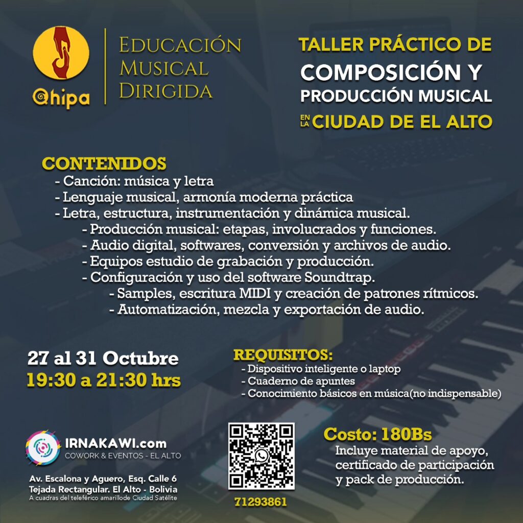 El curso intensivo invita a descubrir el proceso creativo detrás de la producción musical moderna. A lo largo de varias sesiones, los participantes explorarán cómo componer canciones desde la idea inicial hasta su versión final. Se abordarán nociones de armonía, estructura lírica y dinámica musical aplicadas a la composición contemporánea. También se profundizará en el uso de instrumentos populares y herramientas digitales para la creación sonora. El programa incluye la introducción al software Soundtrap, donde se practicarán técnicas de grabación, edición y mezcla. Los asistentes aprenderán sobre el uso de samples, escritura MIDI y diseño de arreglos.