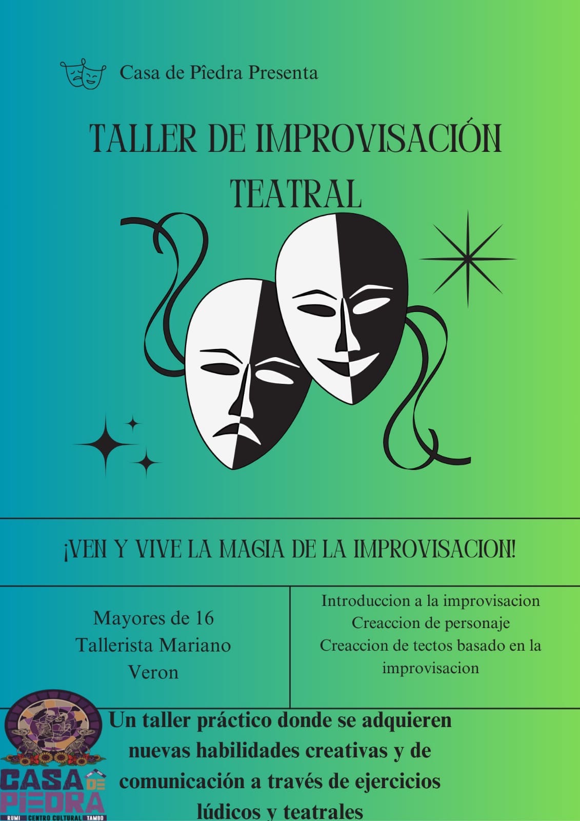 No te pierdas el taller acelerado de improvisación actoral, dirigido por el orientador Mariano Verón, proveniente de Buenos Aires, Argentina.