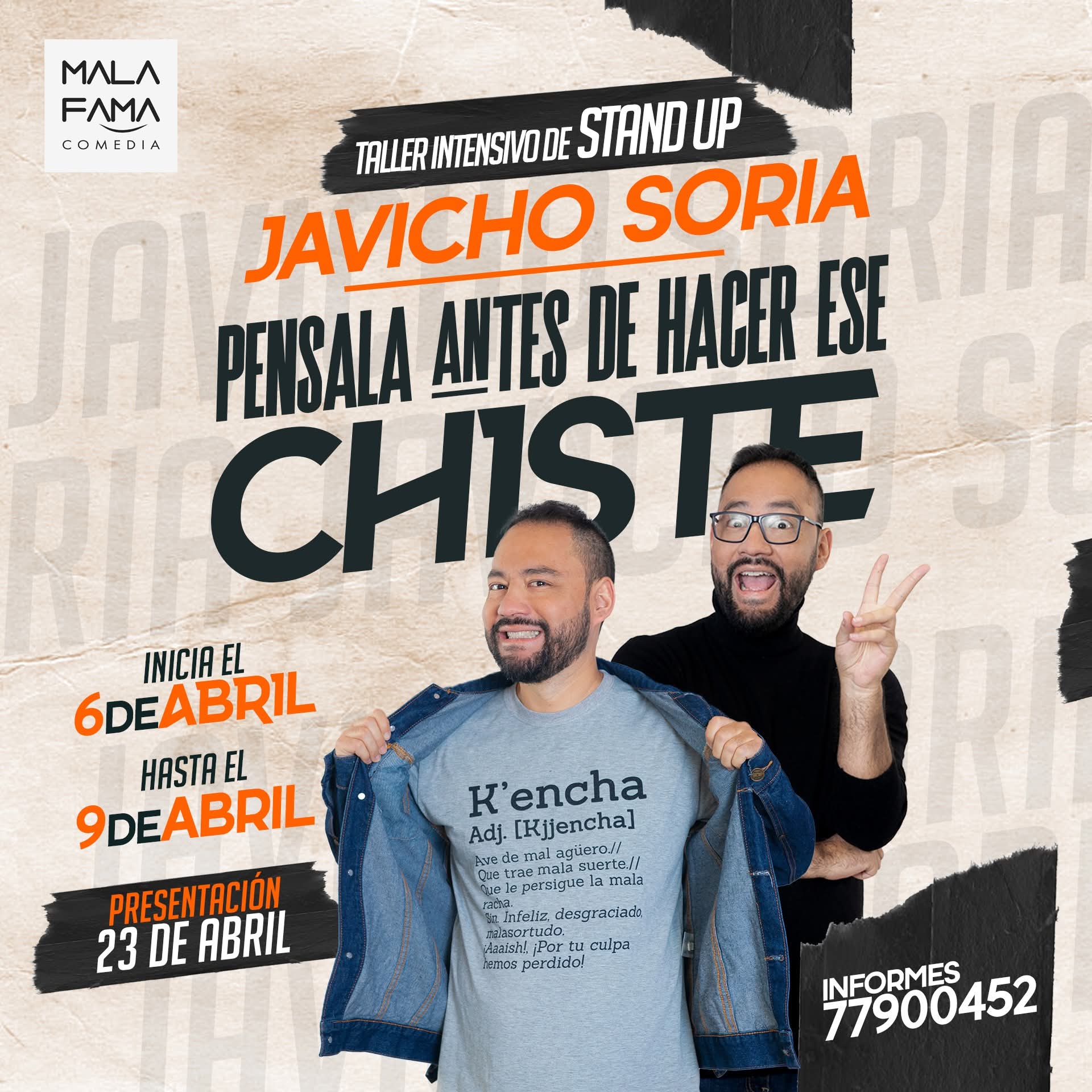 Una experiencia formativa para adentrarse en el mundo de la comedia, aprendiendo a estructurar una rutina, crear chistes propios y desenvolverse en un escenario en vivo. A lo largo de sesiones intensivas, se desarrolla el estilo personal y la confianza necesaria para conectar con el público desde el humor.