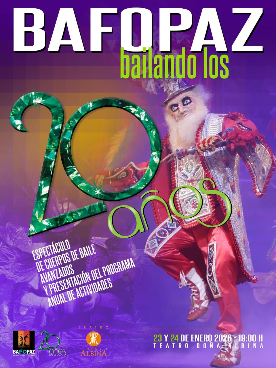 El Ballet Folklórico de La Paz cumple 20 años y para celebrar, realizará dos funciones con la actuación de sus distintos cuerpos de baile. Además, anuncia, presentará su programa de actividades 2026.