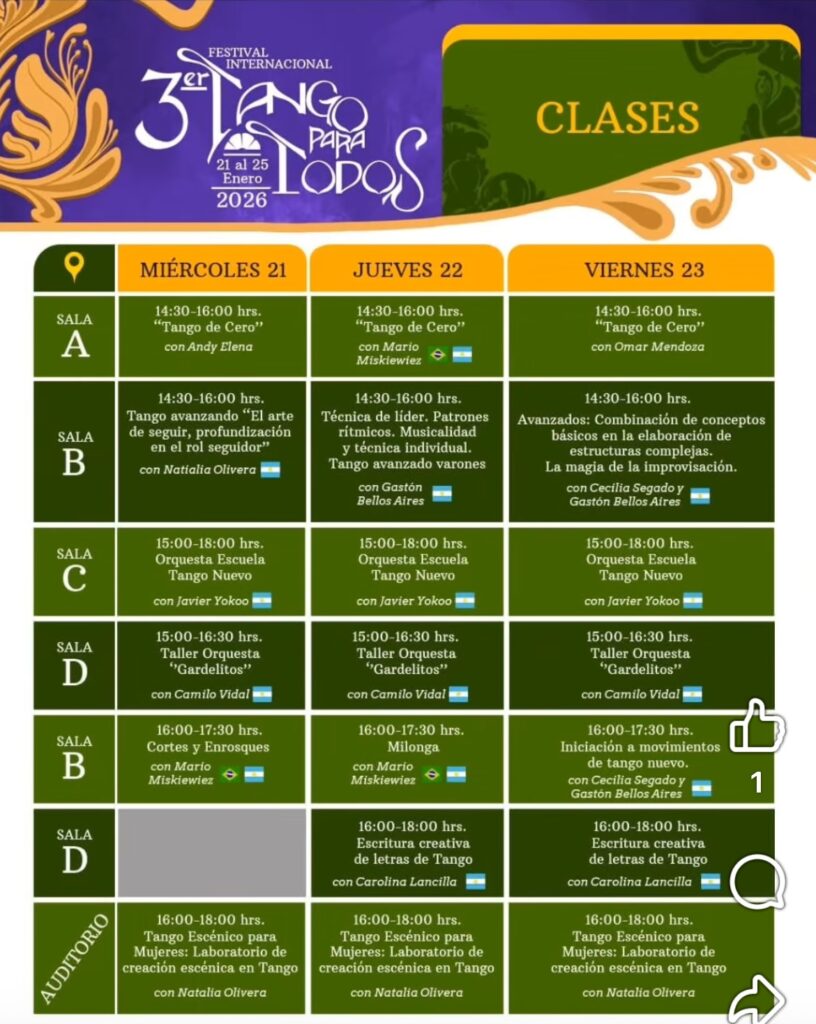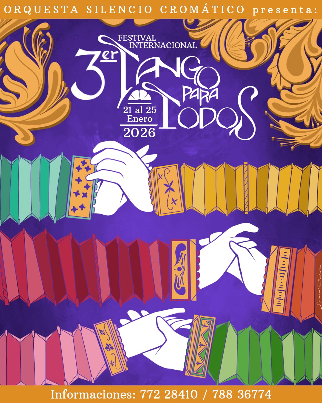 La ciudad de La Paz será el punto de encuentro del tango con artistas internacionales de Argentina, Francia y Brasil. Serán cinco días para aprender a bailar, hacer música y escribir sobre tango, explorando tanto el tango tradicional como el tango nuevo. Talleres, conciertos, milongas, orquestas, espacios de creación y formación. Para todas las edades, todos los gustos y todos los niveles: tanto para quienes dan sus primeros pasos como para artistas y aficionados con experiencia. El tango como lenguaje vivo, diverso y en movimiento. El festival se desarrollará en diversos escenarios y espacios públicos, como la Plaza Abaroa, Teatro Nuna, Thelonious, Casa Argentina.