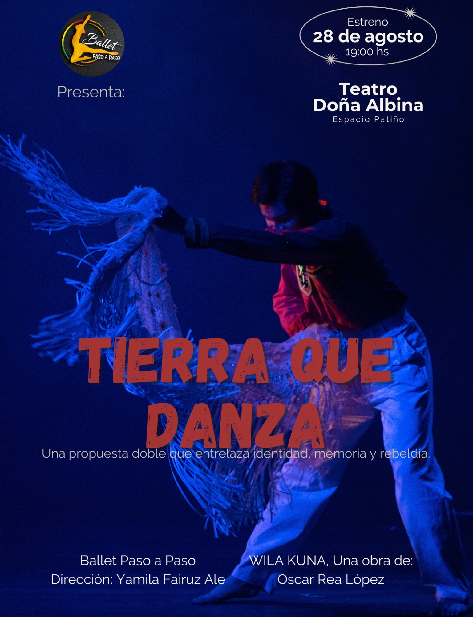 Este 28 de agosto, el escenario del Teatro Doña Albina se transforma en territorio vivo con el estreno de Tierra que danza, una propuesta doble que entrelaza identidad, memoria y rebeldía. Dos obras. Dos miradas. Un mismo cuerpo colectivo. El Ballet Paso a Paso, bajo la dirección de Yamila Fairuz Salinas, nos lleva al origen con fuerza y poesía. Wila Kuna, creación del coreógrafo Oscar Rea López, quien explora el cuerpo como archivo de memorias precolombinas, en un ritual de movimiento y resistencia.