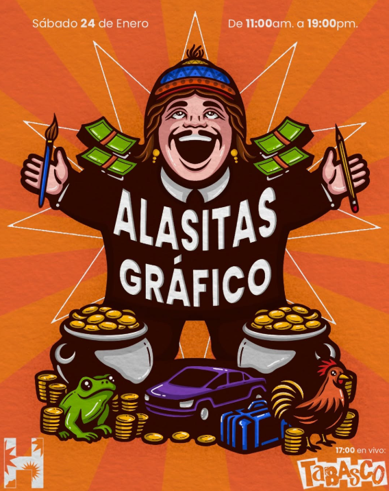 Huella convoca a compartir un día con muchas sorpresas, feria y venta de arte gráfico, mini apis de cortesía, juegos clásicos de Alasitas, retratos en vivo, la tradicional venta de piezas miniaturas en cerámica y, para cerrar el día, la gran presentación de Tabasco Surf a las 17:00. Nos vemos el sábado para compartir el arte en abundancia.