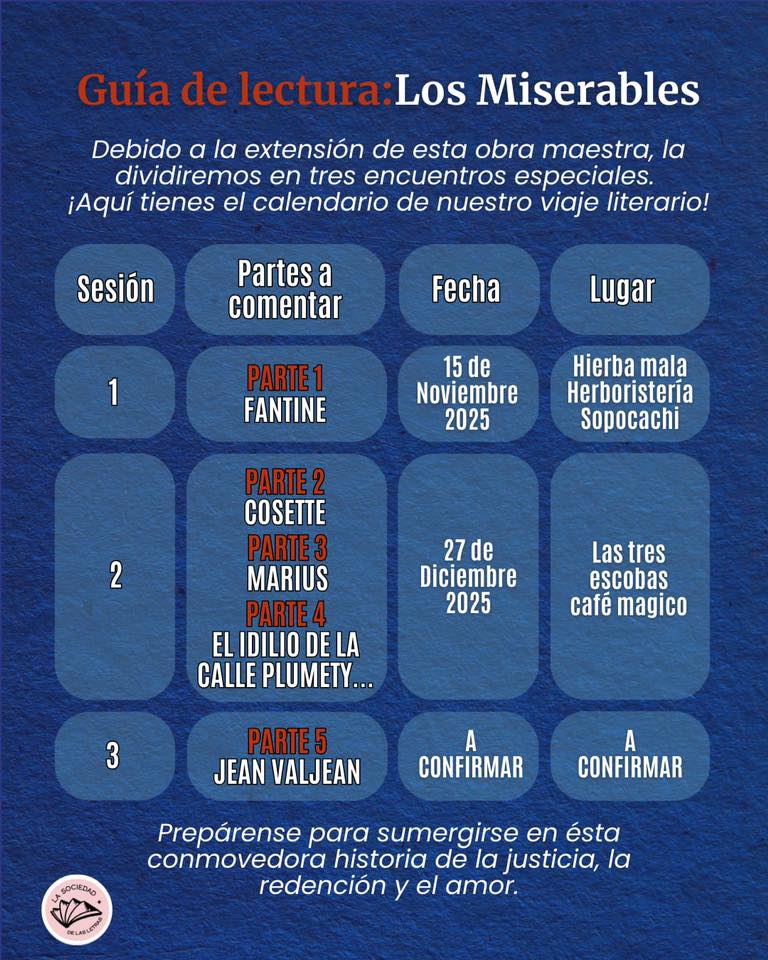 Segunda reunión sobre Los Miserables, de Víctor Hugo y seguir conociendo sobre la fuerza de la esperanza y la redención. La lectura continuará con: