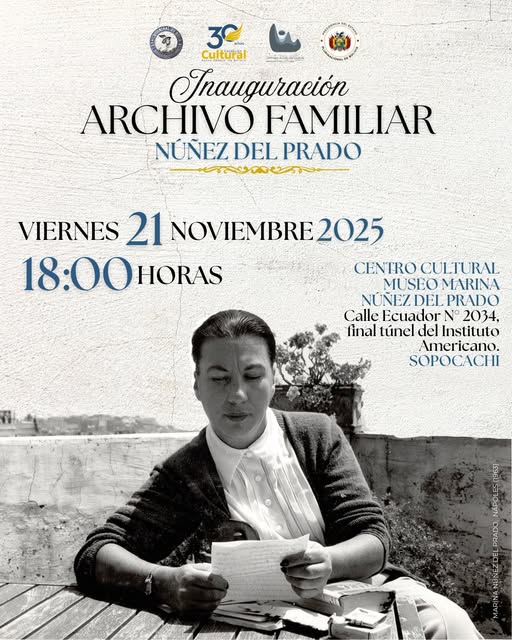 El Centro Cultural Museo Marina Núñez del Prado invita al público a la apertura oficial del archivo personal de la familia Núñez del Prado, un valioso acervo que reúne documentos, poemas, fotografías, correspondencia y memorias que testimonian la vida, obra y legado de una de las familias más influyentes en el arte y la cultura boliviana.