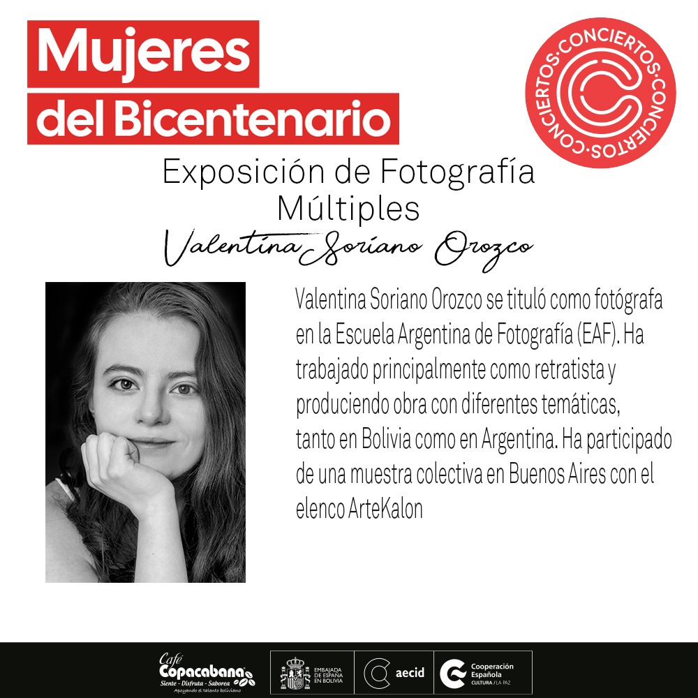 En el marco del programa Mujeres del Bicentenario, Estudio Cantus invita a la exposición de fotografía de Valentina Soriano Orozco, fotógrafa boliviana con formación en Imagen Fotográfica en la Escuela Argentina de Fotografía. Ha trabajado principalmente como retratista y produciendo obra con diferentes temáticas, además de producciones comerciales tanto en Bolivia como en Argentina. Ha participado de una muestra colectiva en Buenos Aires con el elenco ArteKalon.