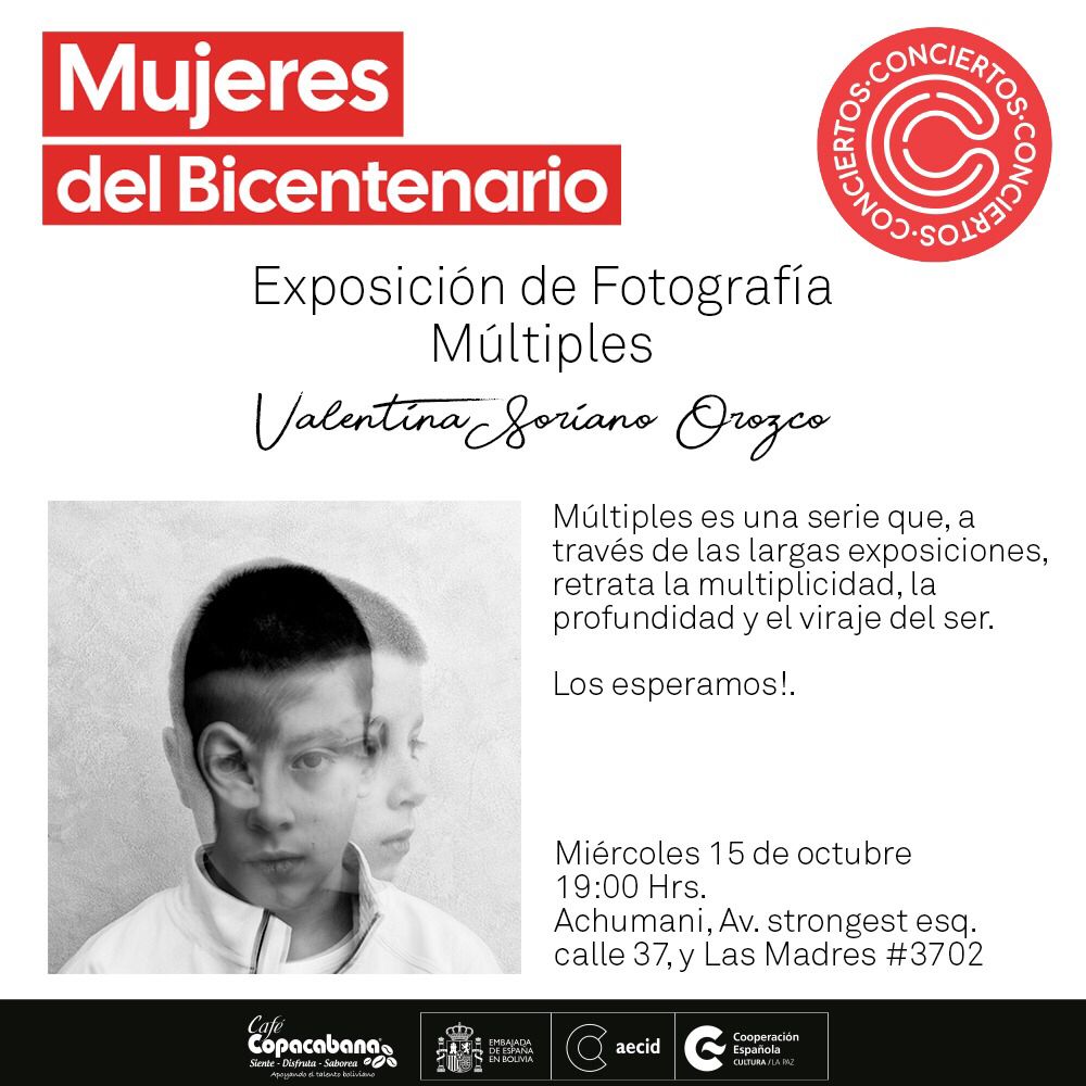 En el marco del programa Mujeres del Bicentenario, Estudio Cantus invita a la exposición de fotografía de Valentina Soriano Orozco, fotógrafa boliviana con formación en Imagen Fotográfica en la Escuela Argentina de Fotografía. Ha trabajado principalmente como retratista y produciendo obra con diferentes temáticas, además de producciones comerciales tanto en Bolivia como en Argentina. Ha participado de una muestra colectiva en Buenos Aires con el elenco ArteKalon.