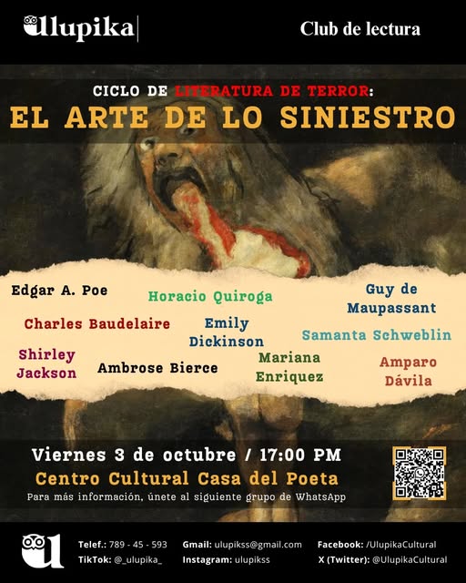 En octubre se explorarán relatos y poemas que abordan lo oscuro, lo inquietante y lo sobrenatural. Cada viernes se abrirá un espacio para compartir lecturas que despiertan miedo y fascinación, revelando cómo el terror se transforma en arte a través de la palabra.
