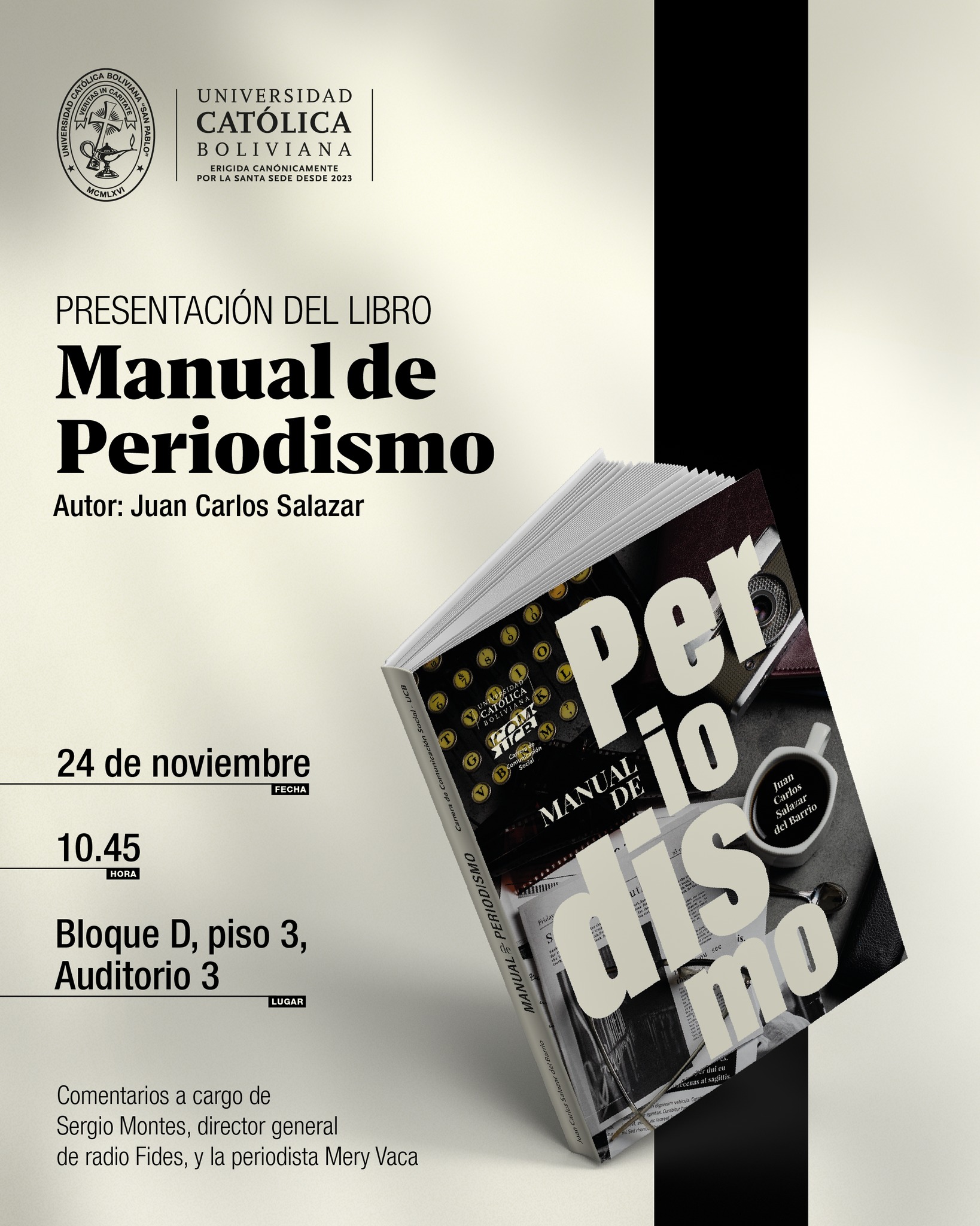 En un momento marcado por la desinformación, la expansión de la propaganda disfrazada de comunicación estratégica y la creciente confusión que genera la posverdad, el periodismo reafirma su importancia como herramienta imprescindible para comprender la realidad. En este contexto, se presenta Manual de Periodismo, la nueva obra del reconocido periodista y maestro Juan Carlos Salazar del Barrio, concebida como un aporte fundamental para las nuevas generaciones de comunicadores.