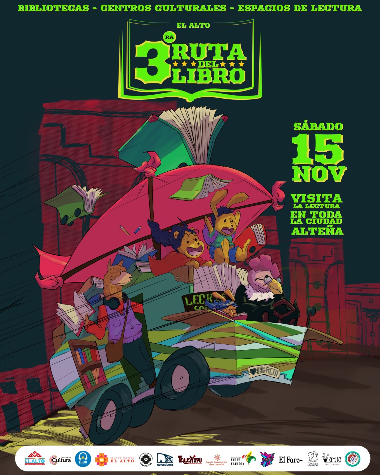 La Plataforma Cultural de El Alto invita a la tercera versión de la ruta del libro de El Alto, que recorrerá 13 espacios y colectivos culturales, junto a cinco bibliotecas municipales.