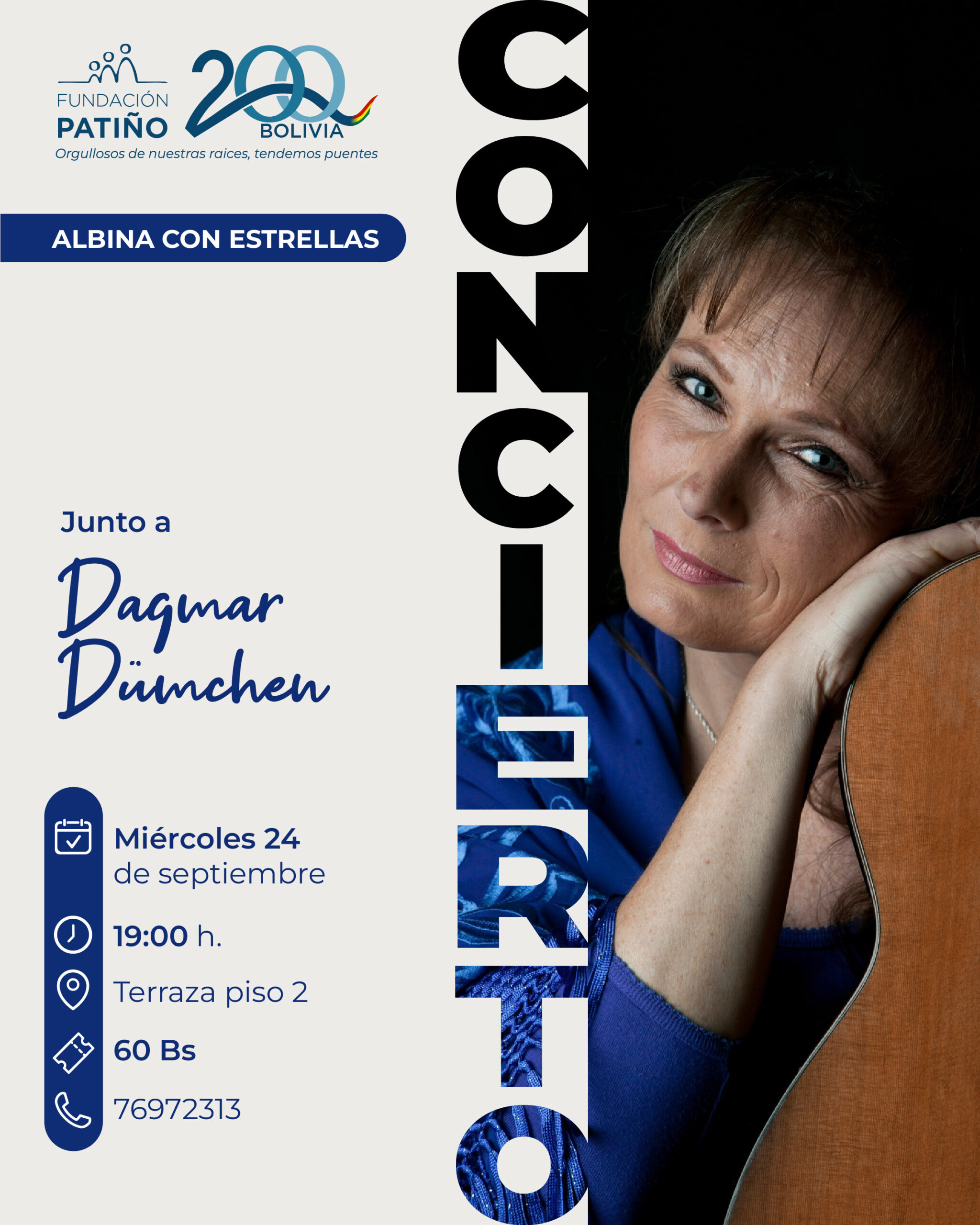 Albina con estrellas invita a compartir una noche acogedora con la voz de Dagmar Dumchen. El programa te invita a visitar nuestros espacios de exposición, para luego generar un encuentro con la música en la terraza del Teatro Doña Albina, con un chocolate caliente bajo las estrellas.
