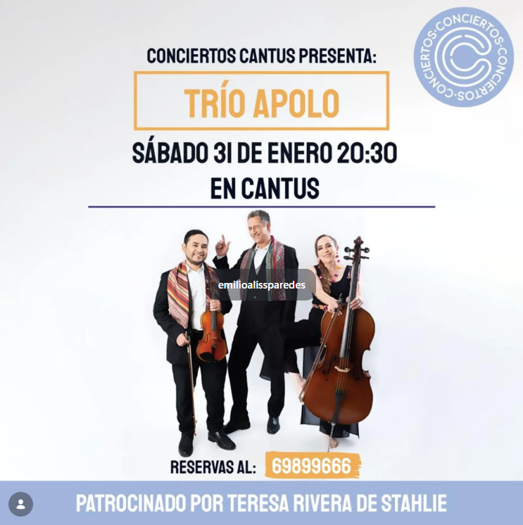 Este sábado 31 Cantus inicia su tercera temporada de conciertos con un elenco de lujo; desde Cochabamba el Trío Apolo brindará un maravilloso concierto con nuevas obras que se filmarán y grabarán.