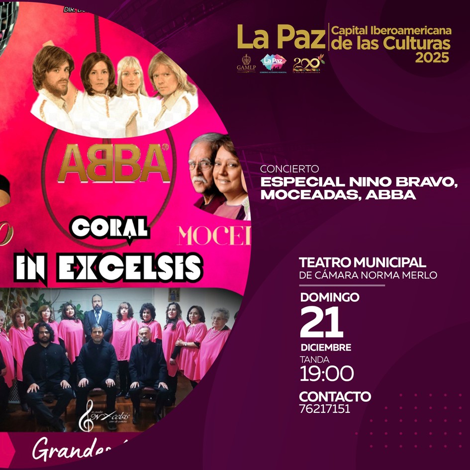 Un concierto dedicado a los clásicos de Nino Bravo, Mocedades y ABBA, con interpretaciones que reviven algunos de los éxitos más emblemáticos de estas agrupaciones y artistas. La propuesta está dirigida a público general que busca una velada musical cargada de nostalgia y repertorios reconocidos.