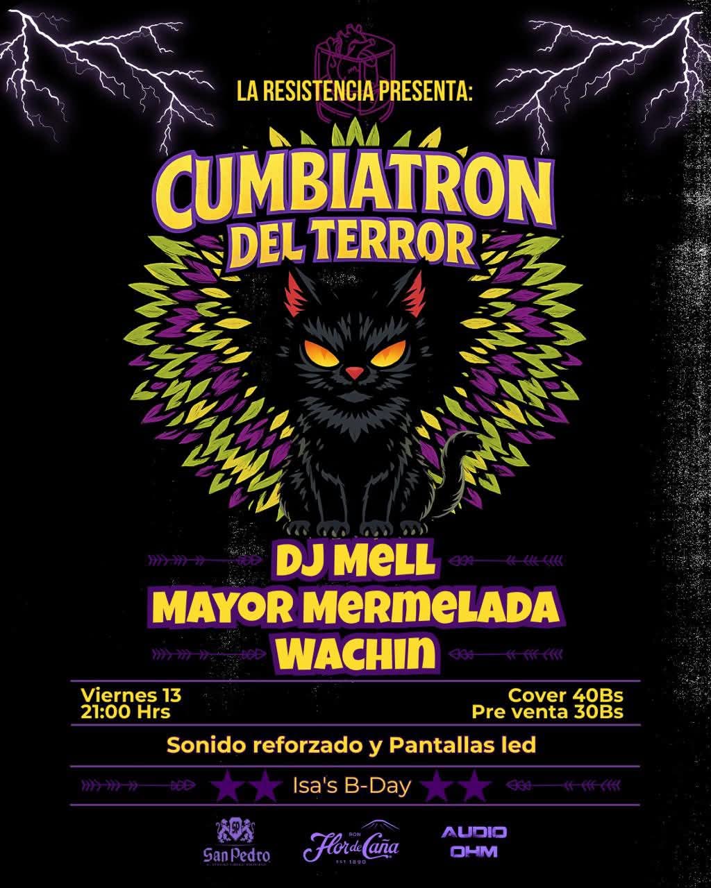 Una noche intensa de cumbia alternativa y fiesta en el corazón de Sopocachi. La Resistencia abre sus puertas para una velada llena de ritmo, baile y celebración junto al colectivo Cumbia o Muerte. Con sonido reforzado, pantallas LED y una selección de DJ invitados, la pista promete encenderse hasta la madrugada. Además, la noche celebra un cumpleaños especial y el aniversario de los organizadores, con promociones y sorpresas para el público.