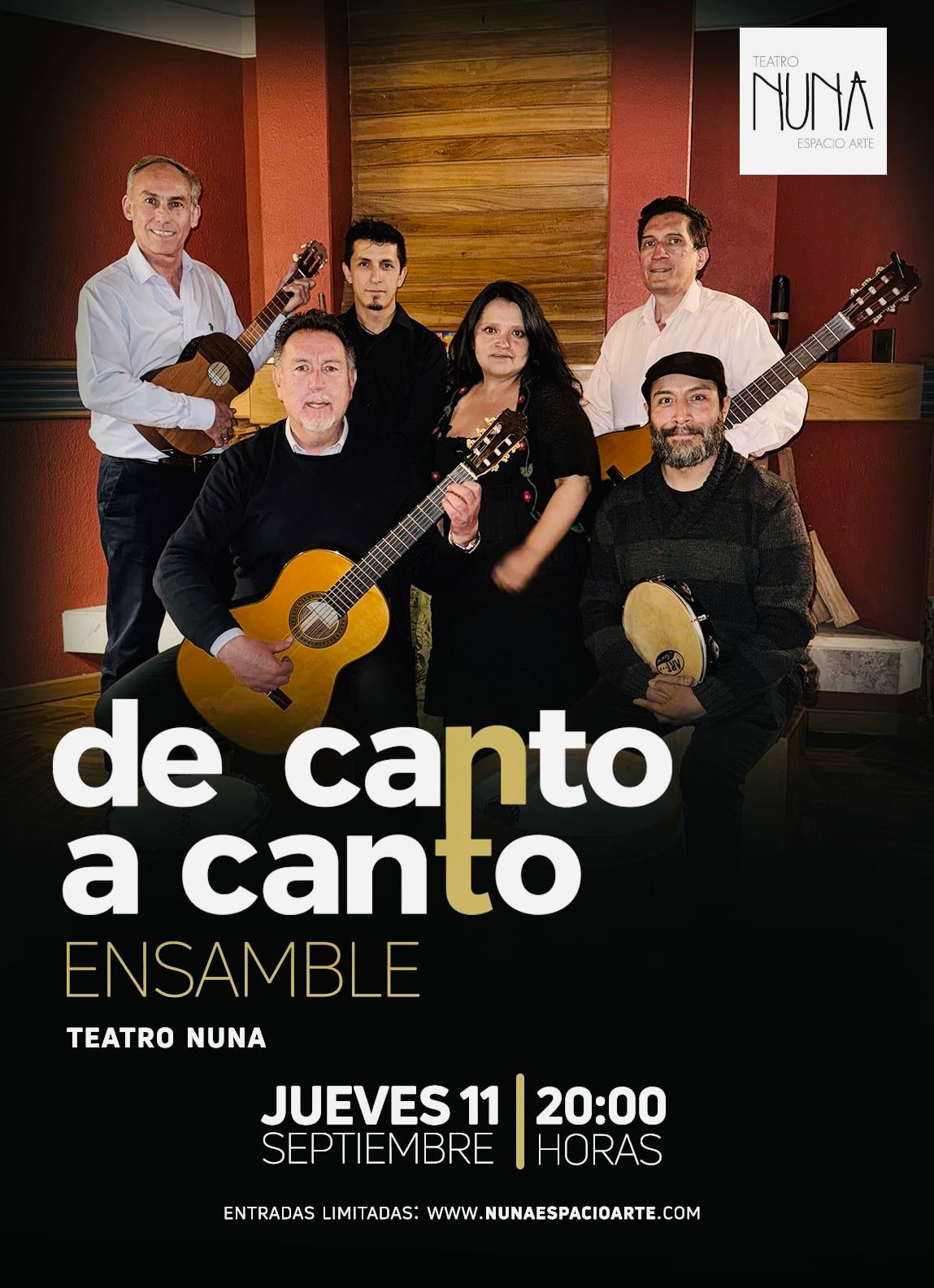 Teatro Nuna presenta al Ensambe “De canto a canto”, una propuesta musical con un repertorio de clásicos latinoamericanos atemporales, reinventados con un toque fresco y moderno que te hará sentir la cultura americana morena.