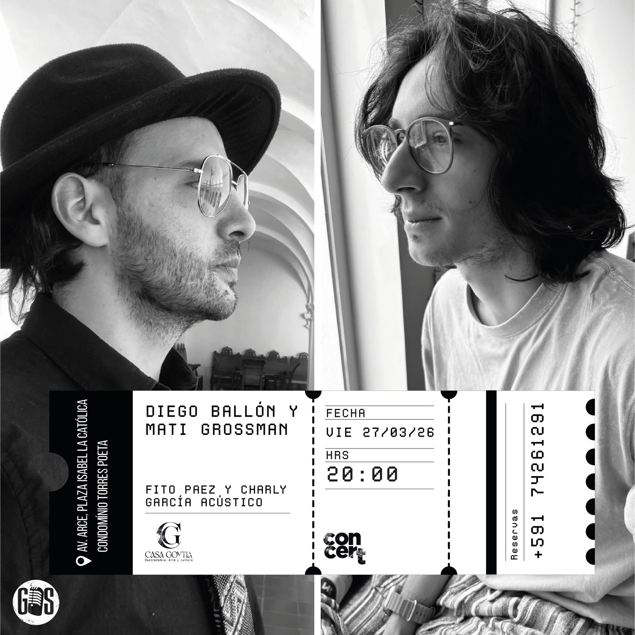 Una sesión íntima donde la música se reduce a lo esencial. Diego Ballón y Matías Grossman se reúnen en formato acústico para reinterpretar la obra de Fito Páez y Charly García. Entre arreglos sutiles y una atmósfera cercana, la propuesta invita a redescubrir canciones icónicas desde una perspectiva más desnuda y emocional. Una noche sin artificios, donde cada nota y cada silencio construyen una experiencia única para escuchar sin prisa.