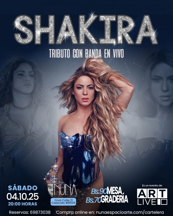 Un tributo lleno de energía, nostalgia y emociones con los grandes éxitos de Shakira, la artista que ha marcado generaciones. Clásicos como Antología, Suerte, Si te vas, Antes de las seis. La voz principal está a cargo de Clau Rivera, mientras que el coro lo interpreta Andrea Cárdenas. Ricardo Carvallo se encarga de la guitarra, Kevin Herrera del bajo y Franco Quisbert del teclado. La batería y la dirección del grupo están a cargo de Emmanuel Quisbert.