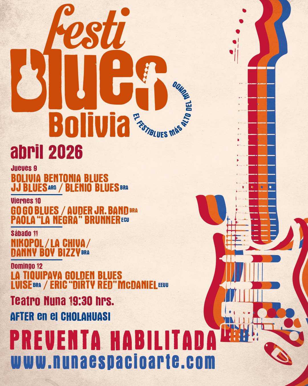 Llega la 11ª versión del FestiBlues Bolivia. Durante una semana, músicos nacionales e internacionales se reunirán en una celebración intensa del blues y sus múltiples fusiones, con conciertos, encuentros musicales y talleres gratuitos abiertos al público. Una experiencia que recorrerá desde las raíces más tradicionales del blues hasta propuestas contemporáneas que dialogan con el rock, el soul y sonidos del mundo, creando un espacio único de conexión entre artistas y público.