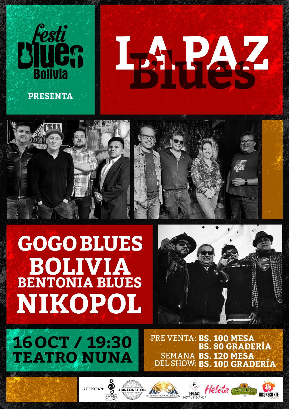El Teatro Nuna será el epicentro del blues con la presentación de bandas icónicas, como Gogo Blues, Bolivia Bentonia Blues y Nikopol. Una velada histórica cargada de emoción, talento y el feeling único del blues verdadero.
