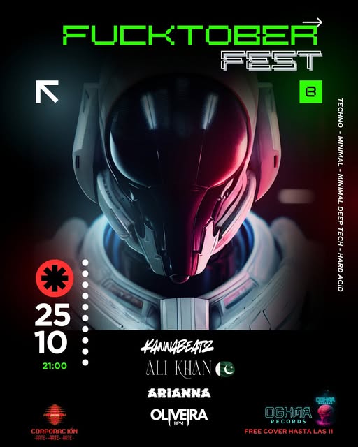 Una nueva propuesta electrónica que reúne lo mejor del techno, minimal, deep tech y hard acid en una experiencia sonora intensa. Kannabeatz, All Khan, Arianna y Oliveira integran el line up con sets cargados de energía y vanguardia.