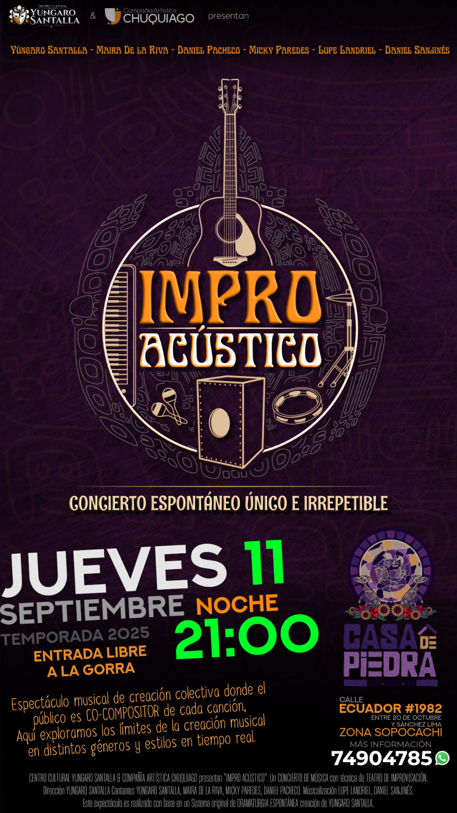 Un espectáculo donde el público es coautor de las canciones del encuentro y por eso cada show es único e irrepetible.