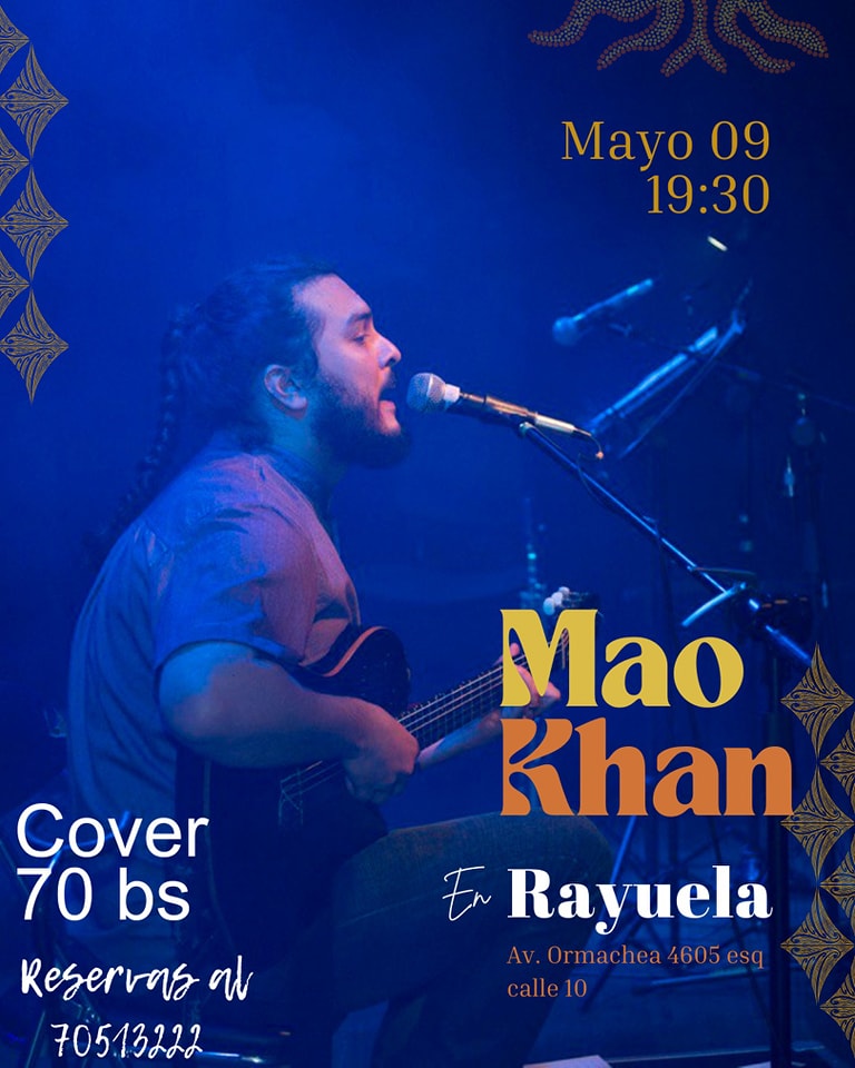 El músico Mao Khan ofrecerá un concierto en el espacio cultural Rayuela. Interpretará un repertorio acústico que fusiona folk, canciones del autor y sonoridades latinoamericanas. El evento se desarrollará en un ambiente íntimo, propicio para la interacción directa con el público.