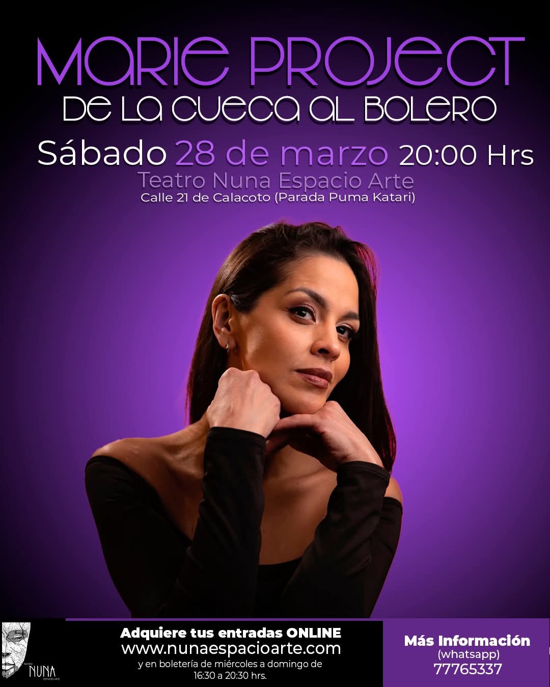 Marie Project presenta un concierto que une dos lenguajes musicales profundamente expresivos: la cueca boliviana en versiones íntimas y renovadas y el bolero latino con toda su sensibilidad.