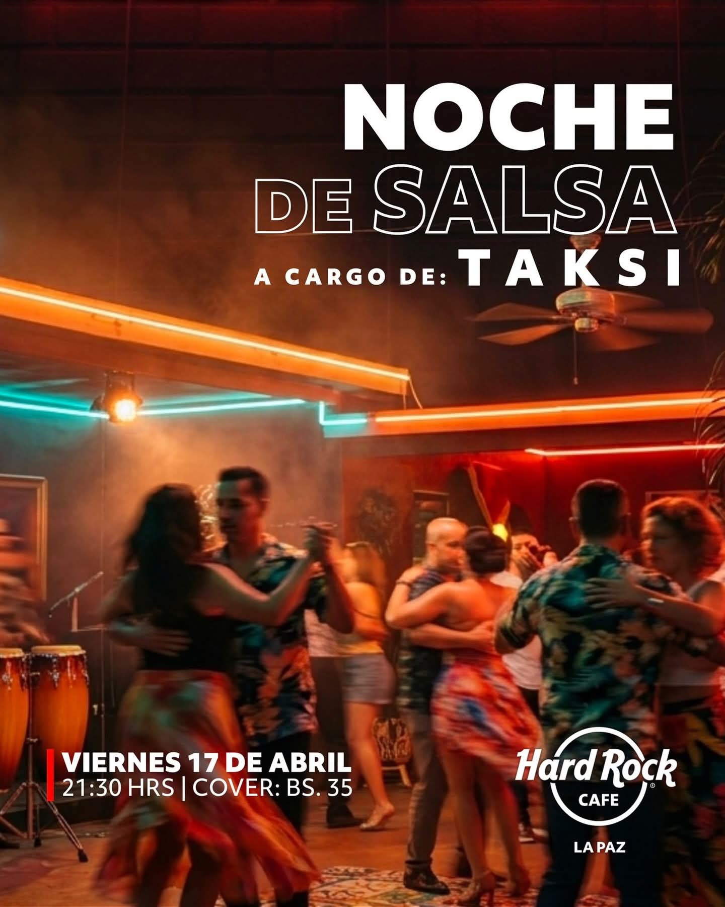 Una noche para dejarse llevar por el ritmo y la energía de la salsa. La pista se llenará de sabor y movimiento con la música de Taksi, creando un ambiente vibrante que invitará a bailar sin parar. Una propuesta perfecta para armar plan, compartir y disfrutar de una experiencia llena de música y buena vibra.