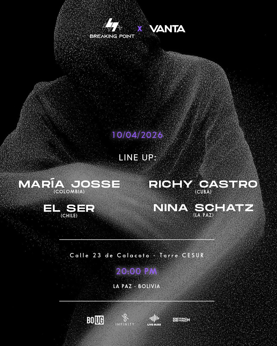 Se presenta una noche de música electrónica que reúne a artistas internacionales y locales en una experiencia intensa y envolvente. Con un line up que conecta distintas escenas y estilos, el evento propone una atmósfera sonora potente para disfrutar de sets en vivo y una energía única en la pista.