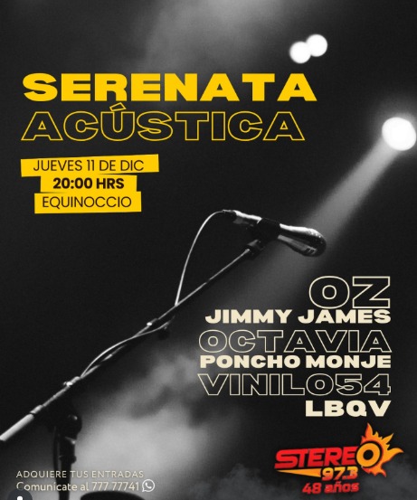 Stereo 97.3 invita a compartir una noche especial, este jueves 11 de diciembre, para celebrar sus 48 años. Será en Equinoccio con la tradicional serenata acústica.