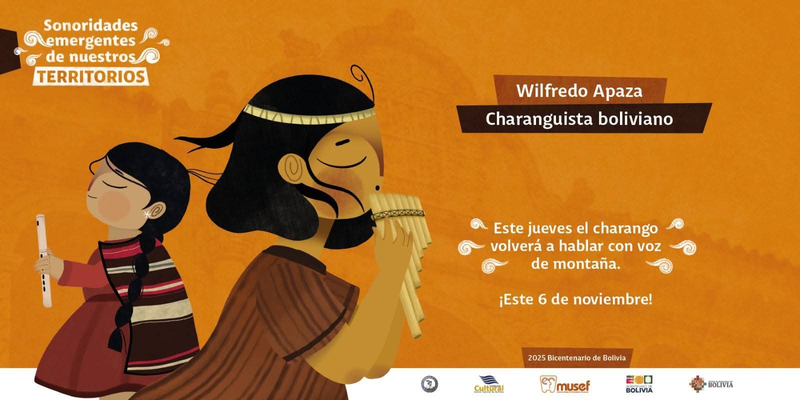 Una noche para sentir la fuerza de nuestras raíces a través del charango. Wilfredo Apaza guía por paisajes sonoros que nacen de los territorios bolivianos, envolviendo en melodías que sanan, celebran y conectan con la vida y la memoria. Un concierto íntimo, profundo y lleno de identidad.
