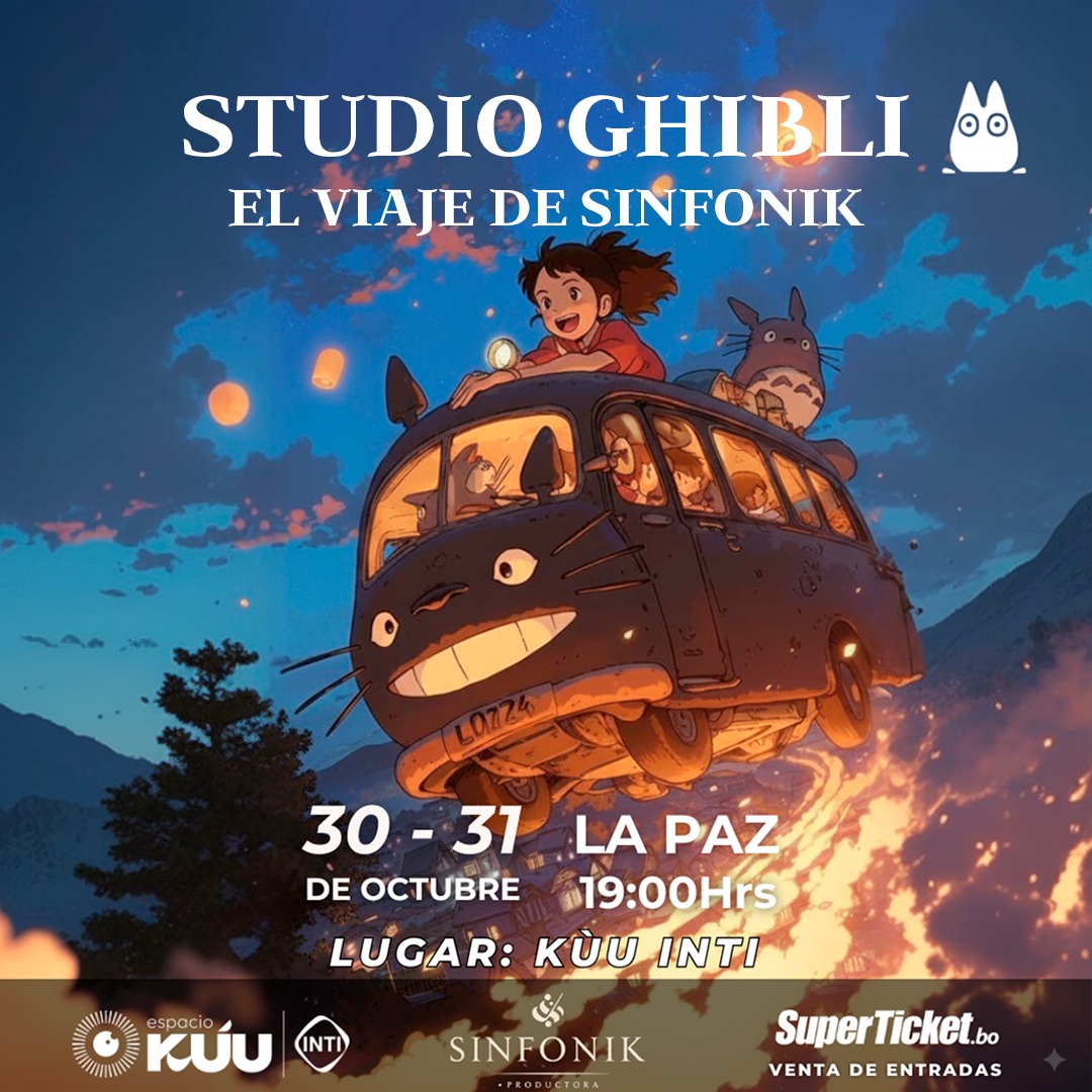 Un concierto sinfónico presentará las melodías más emblemáticas de Studio Ghibli, con temas de Mi vecino Totoro, El viaje de Chihiro y El castillo ambulante. Una experiencia musical que combina fantasía y emoción, en el escenario del Espacio Kúu Inti.
