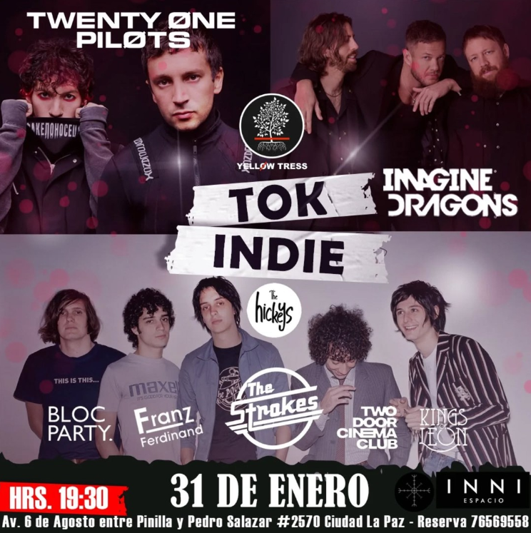Serán cuatro horas llenas de la mejor música de tus artistas favoritos, con Yellow Trees interpretando a Twenty One Pilots e Imagine Dragons. The Hickeys con The Strokes y un especial a Indie Rock (Bloc Party, Franz Ferdinand, TDCC y más.