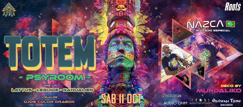 Una experiencia indoor inmersiva que combina música, visuales y ambientación psicodélica. Con la participación de DJ Nazca (Brasil) y referentes nacionales del psytrance, TOTEM se levanta como un punto de unión entre sonido, arte y comunidad.