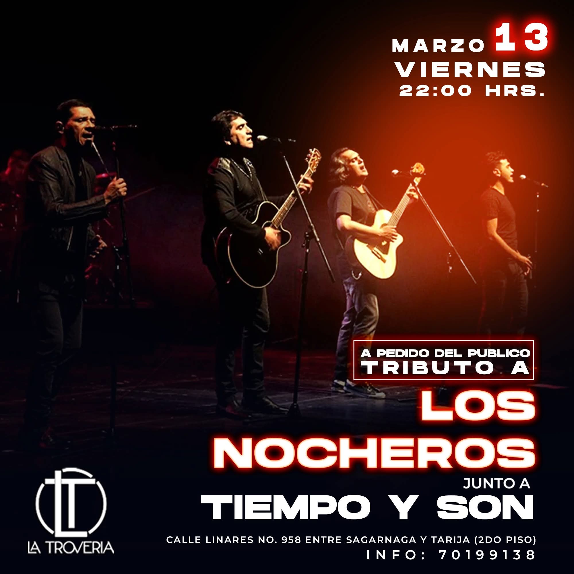 Una noche para cantar con el corazón llega a La Trovería Rooftop Bar. El grupo Tiempo y Son presenta un tributo especial a Los Nocheros, recorriendo algunos de los clásicos más queridos del folklore latinoamericano. La velada promete momentos de nostalgia, romance y música en vivo para disfrutar entre amigos mientras suenan canciones que muchos conocen de memoria.