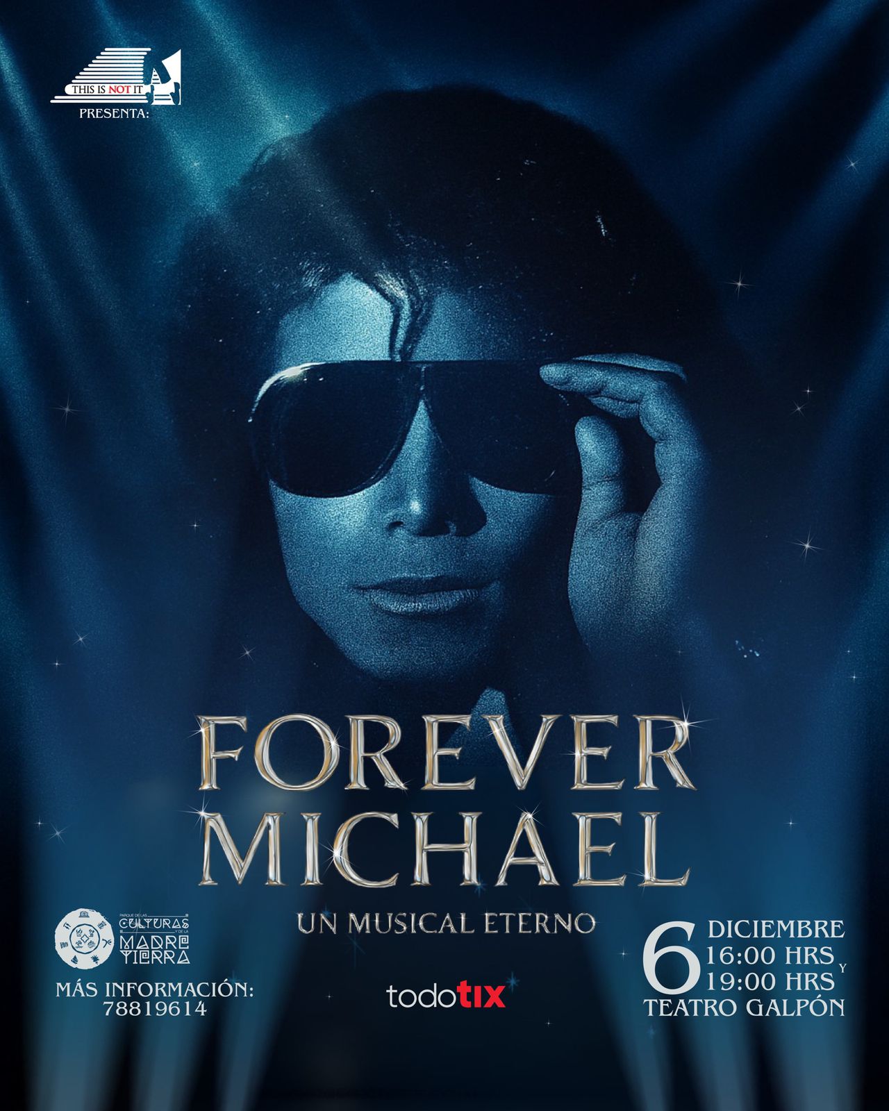 El grupo de jóvenes voluntarios This Is Not It presenta Forever Michael: un musical Eterno; una puesta en escena que promete hacer cantar, vibrar y recordar por qué esta música sigue viva. Un musical en vivo que rinde homenaje al rey del pop.