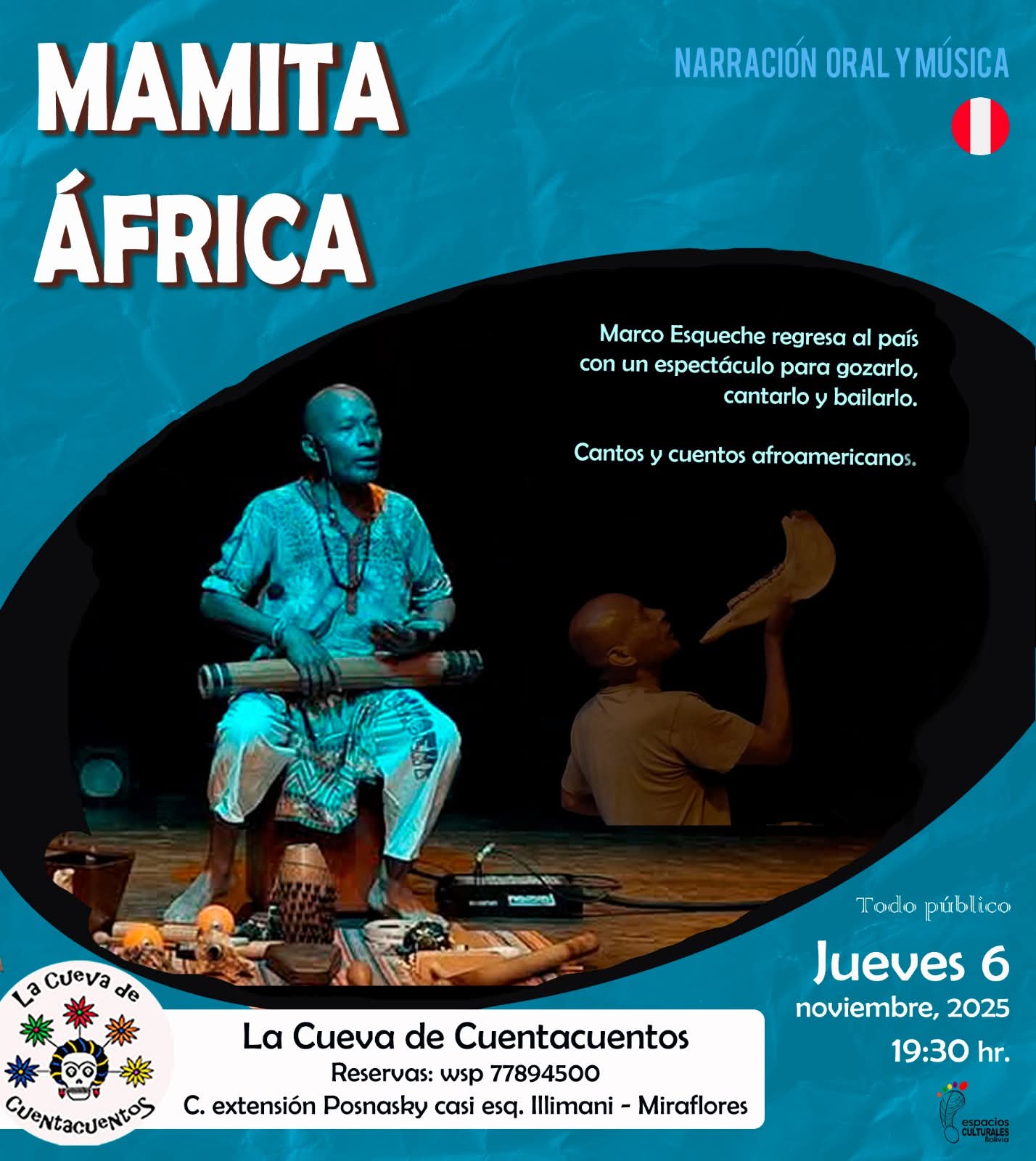 Una noche para viajar con la voz, la música y el ritmo del corazón afroamericano. Marco Esqueche, narrador oral y músico afroperuano, llega a La Paz para compartir historias profundas y melodías que abrazan la memoria ancestral. Un encuentro íntimo y vibrante donde la palabra se convierte en tambor y la música en relato.
