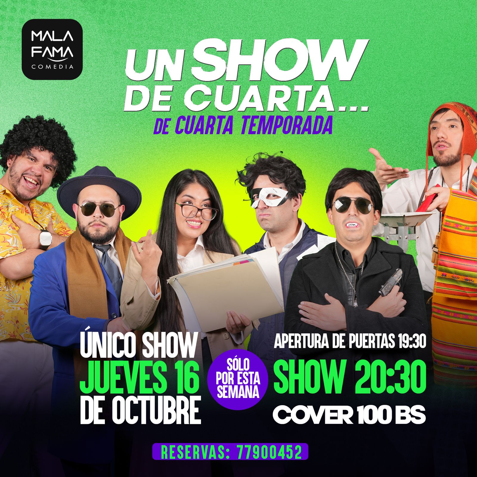 Show de comedia permanente de la ciudad de La Paz, con sketches y música en vivo en Mala Fama Comedia.