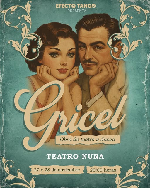 Una obra inédita de danza-teatro que explora el vínculo poético y humano entre José María Contursi —poeta y letrista de tango— y Gricel, la mujer que inspiró su amor. A través de escenas íntimas y coreográficas, el montaje entrelaza historia y emoción, recorriendo las distintas etapas del amor, la pérdida y la memoria. La obra cuenta con personajes principales que dan vida a esta historia y un cuerpo de baile que acompaña cada momento con fuerza, sensibilidad y elegancia.